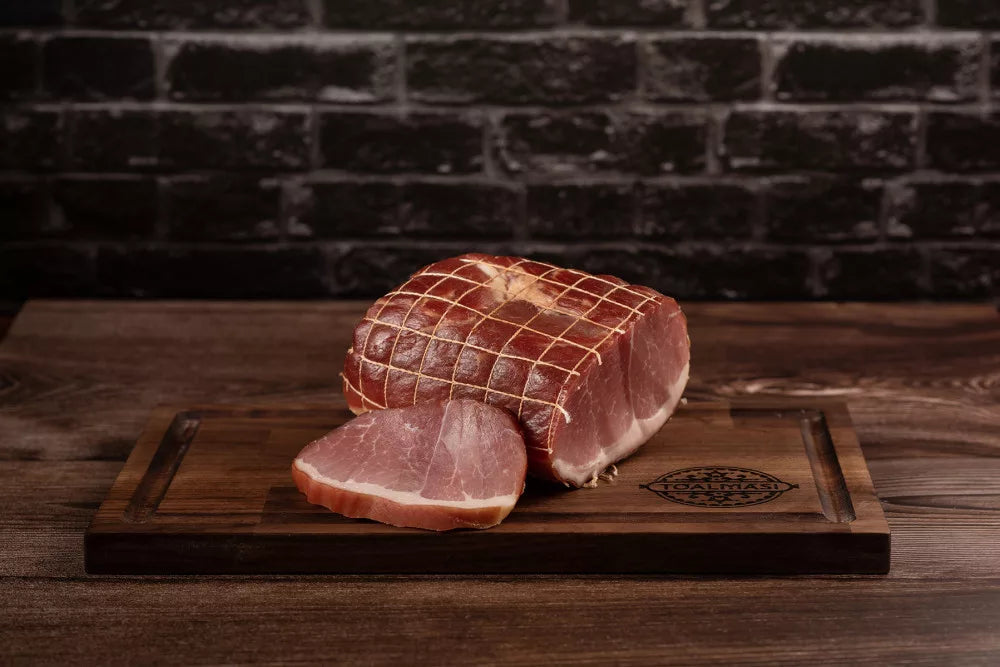 Tóalmåsi rökt skinka tillverkas av benfria, skinnade flÀskben.