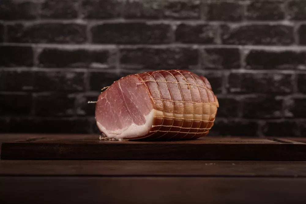 Den kan lÀtt skivas efter tillagning, dess form Àr nÄgot avlÄng, rundad, med skinn pÄ en tredjedel till hÀlften av ytan, med ett maximalt 1 cm lager bacon.